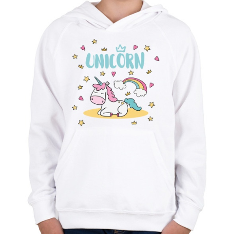 1 kép PRINTFASHION Egyszarvú - Gyerek kapucnis pulóver - Fehér