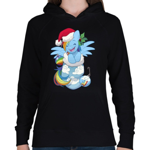 1 kép PRINTFASHION Egyszarvú karácsony - Női kapucnis pulóver - Fekete