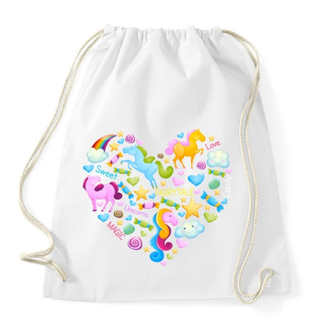 1 kép PRINTFASHION Egyszarvú szív - Sportzsák, Tornazsák - Fehér
