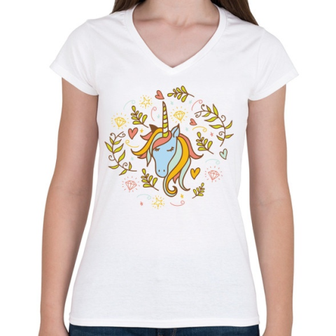 1 kép PRINTFASHION Egyszarvú unikornis virágokkal - Női V-nyakú póló - Fehér