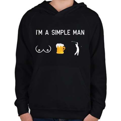 1 kép PRINTFASHION Egyszerű ember - Gyerek kapucnis pulóver - Fekete
