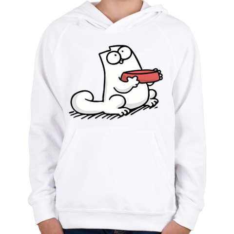 1 kép PRINTFASHION Éhes cica - Gyerek kapucnis pulóver - Fehér