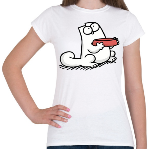 1 kép PRINTFASHION Éhes cica - Női póló - Fehér