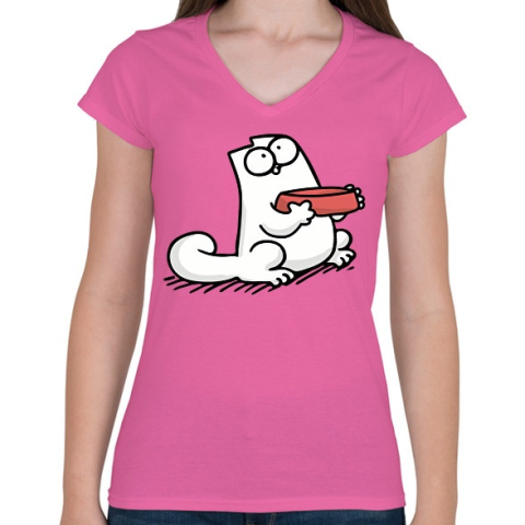 1 kép PRINTFASHION Éhes cica - Női V-nyakú póló - Rózsaszín