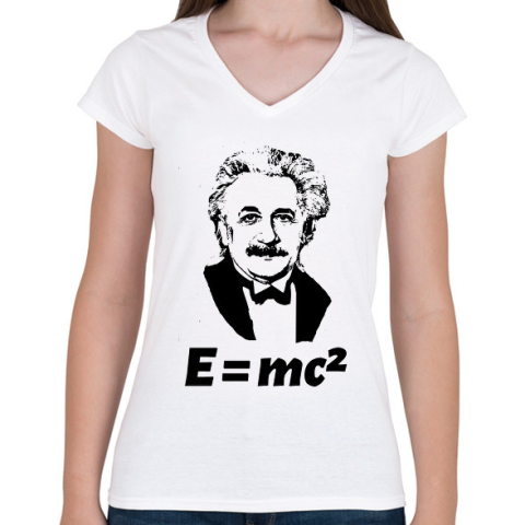 1 kép PRINTFASHION Einstein - Női V-nyakú póló - Fehér