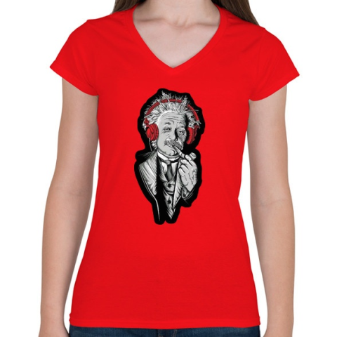 1 kép PRINTFASHION Einstein - Női V-nyakú póló - Piros