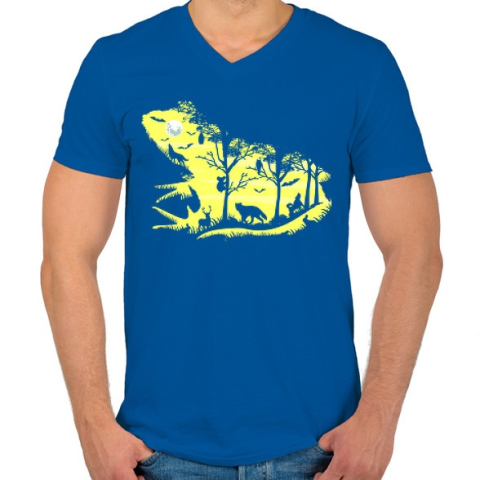 1 kép PRINTFASHION Éjjeli béka - Férfi V-nyakú póló - Királykék
