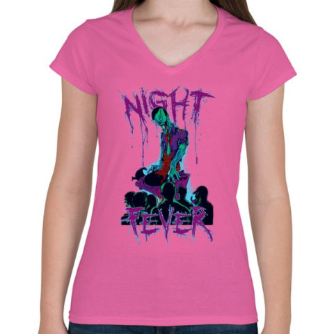 1 kép PRINTFASHION Éjszakai láz - Női V-nyakú póló - Rózsaszín