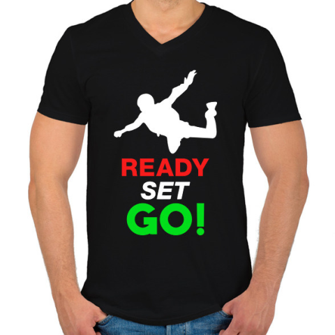 1 kép PRINTFASHION Ejtőernyőzés - Férfi V-nyakú póló - Fekete
