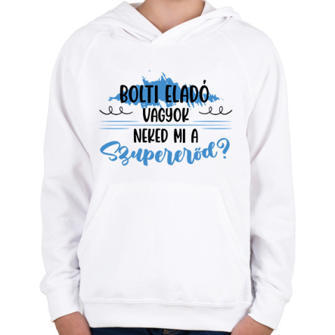 1 kép PRINTFASHION Eladó - Szupererő - Gyerek kapucnis pulóver - Fehér
