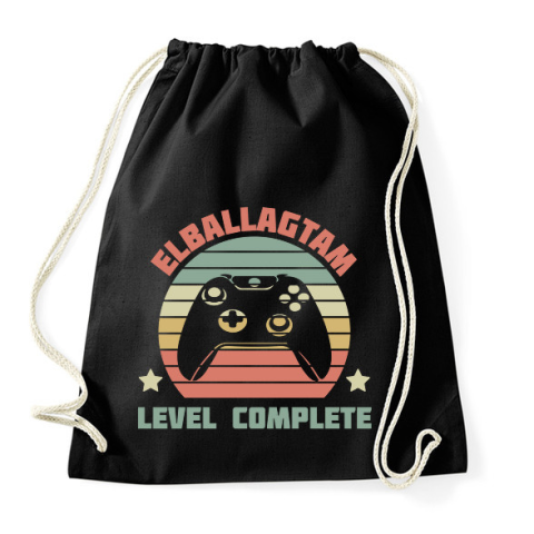 1 kép PRINTFASHION Elballagtam, level complete - Sportzsák, Tornazsák - Fekete