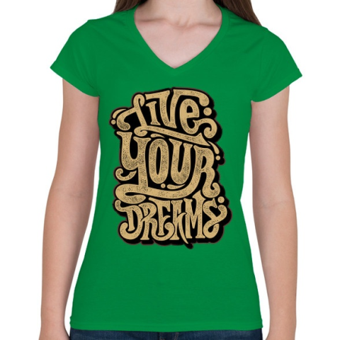 1 kép PRINTFASHION Éld az álmaid - Női V-nyakú póló - Zöld