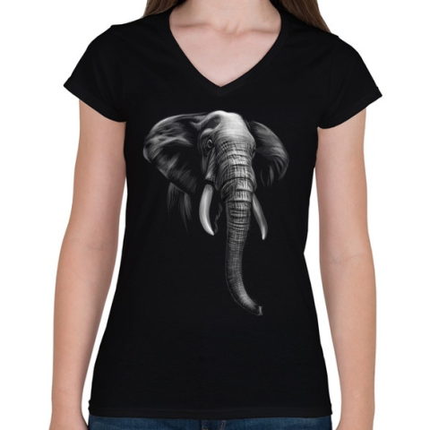 1 kép PRINTFASHION Elefánt portré - Női V-nyakú póló - Fekete