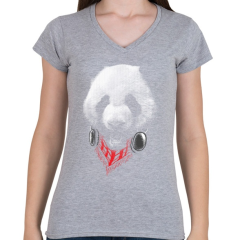 1 kép PRINTFASHION Elegáns panda - Női V-nyakú póló - Sport szürke