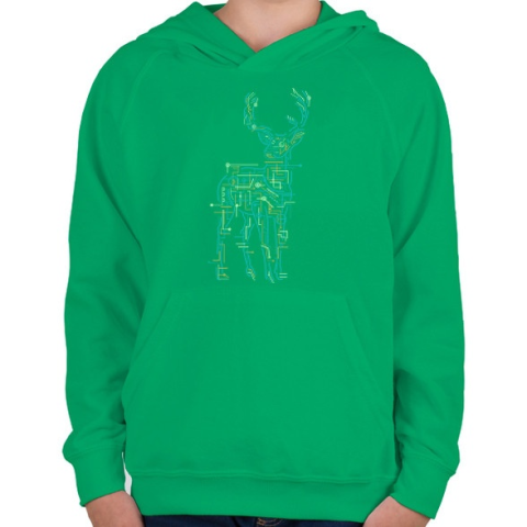 1 kép PRINTFASHION Elektroszarvas - Gyerek kapucnis pulóver - Zöld
