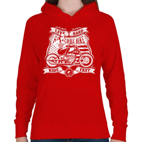 1 kép PRINTFASHION Élj keményen, vezess gyorsan! - Női kapucnis pulóver - Piros