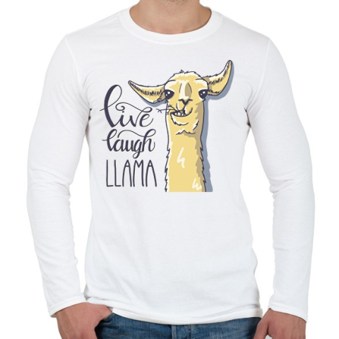 1 kép PRINTFASHION Élj, nevess, LLAMA - Férfi hosszú ujjú póló - Fehér