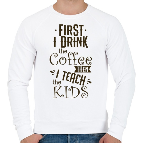 1 kép PRINTFASHION Előbb megiszom a kávét, aztán tanítom a gyerekeket - Férfi pulóver - Fehér