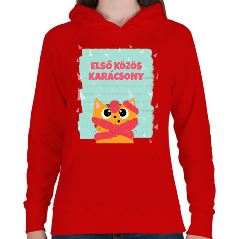 1 kép PRINTFASHION Első közös karácsony - Női kapucnis pulóver - Piros