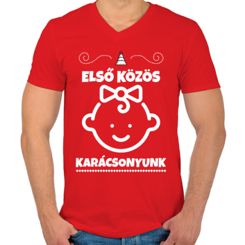 1 kép PRINTFASHION Első közös karácsonyunk 2 - Férfi V-nyakú póló - Piros