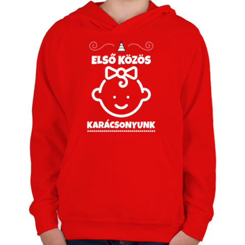 1 kép PRINTFASHION Első közös karácsonyunk 2 - Gyerek kapucnis pulóver - Piros