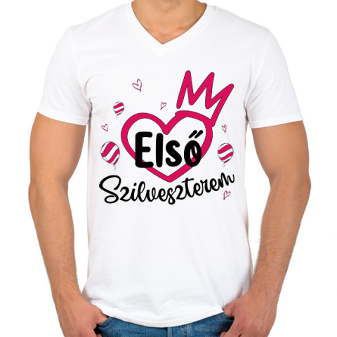 1 kép PRINTFASHION Első szilveszterem - Férfi V-nyakú póló - Fehér