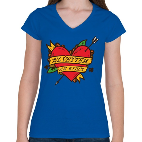 1 kép PRINTFASHION Elvettem az eszét - Női V-nyakú póló - Királykék