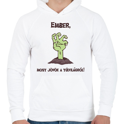 1 kép PRINTFASHION Ember, most jövök... - Férfi kapucnis pulóver - Fehér