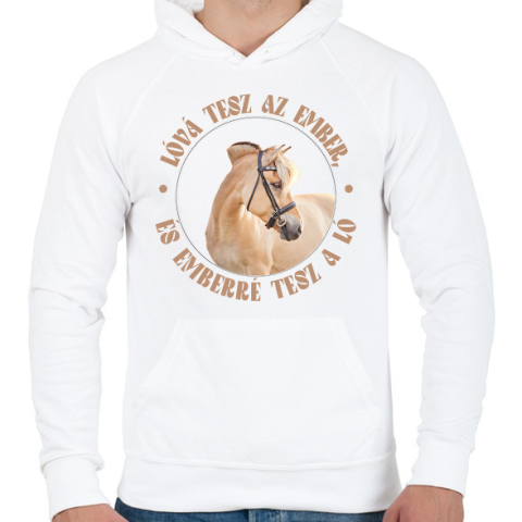1 kép PRINTFASHION Emberré tesz a ló - Férfi kapucnis pulóver - Fehér