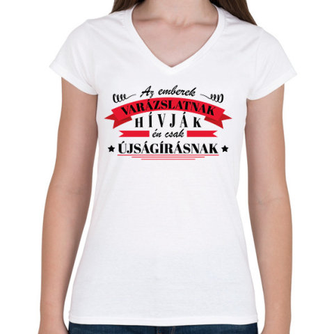 1 kép PRINTFASHION Én csak újságírásnak hívom - Női V-nyakú póló - Fehér