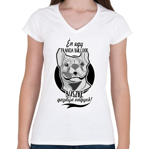 1 kép PRINTFASHION én egy francia bulldog büszke gazdija vagyok! - Női V-nyakú póló - Fehér