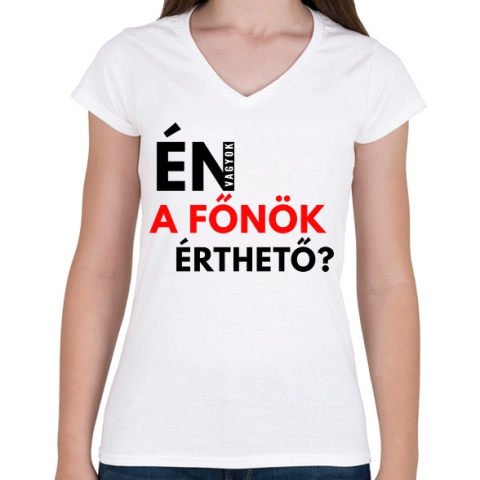 1 kép PRINTFASHION ÉN VAGYOK A FŐNÖK ÉRTHETŐ - Női V-nyakú póló - Fehér