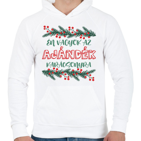 1 kép PRINTFASHION Én vagyok az ajándék - Férfi kapucnis pulóver - Fehér