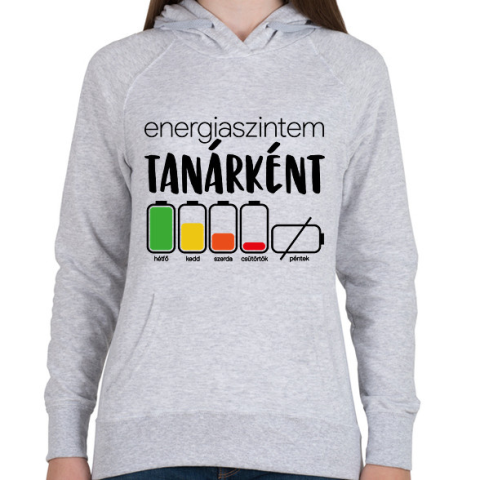 1 kép PRINTFASHION Energiaszintem Tanárként - Női kapucnis pulóver - Sport szürke