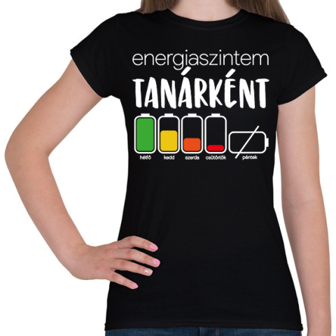 1 kép PRINTFASHION Energiaszintem Tanárként - Női póló - Fekete