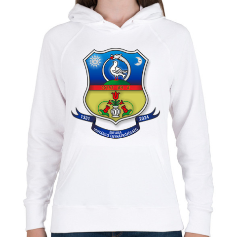 1 kép PRINTFASHION Énlaka Unitárius Egyház Címer II. - Női kapucnis pulóver - Fehér