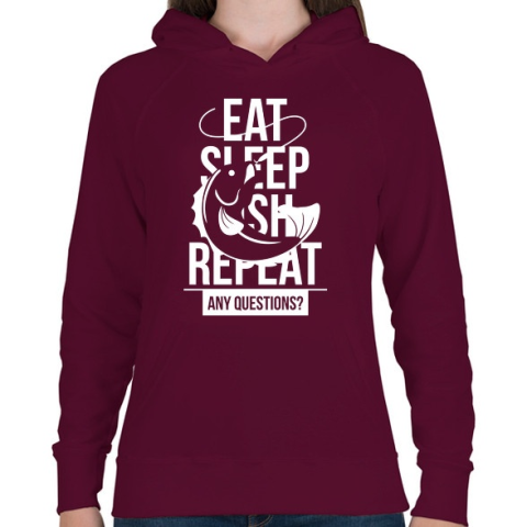 1 kép PRINTFASHION Enni, aludni, pecázni - Női kapucnis pulóver - Bordó