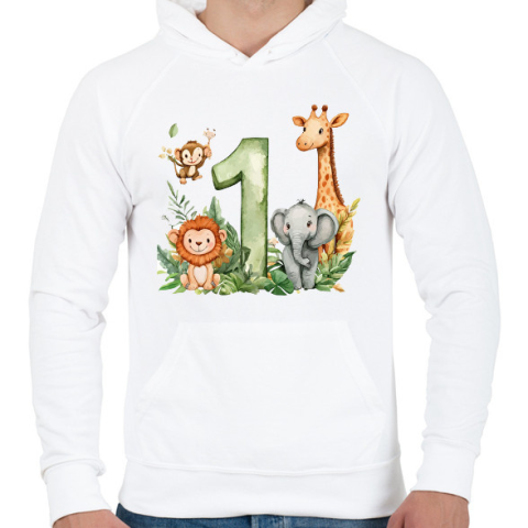 1 kép PRINTFASHION Erdei állatok 1 éves - Férfi kapucnis pulóver - Fehér