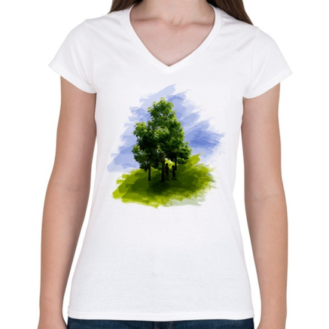 1 kép PRINTFASHION erdőben - Női V-nyakú póló - Fehér