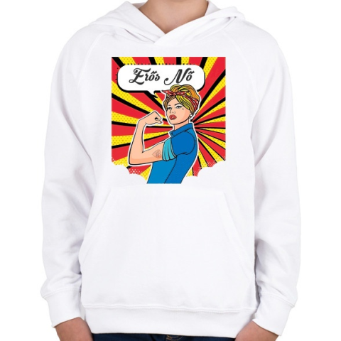 1 kép PRINTFASHION Erős nő - Gyerek kapucnis pulóver - Fehér