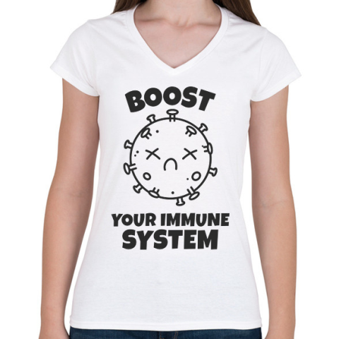 1 kép PRINTFASHION ERŐSÍTSD AZ IMMUNRENDSZERED - Női V-nyakú póló - Fehér