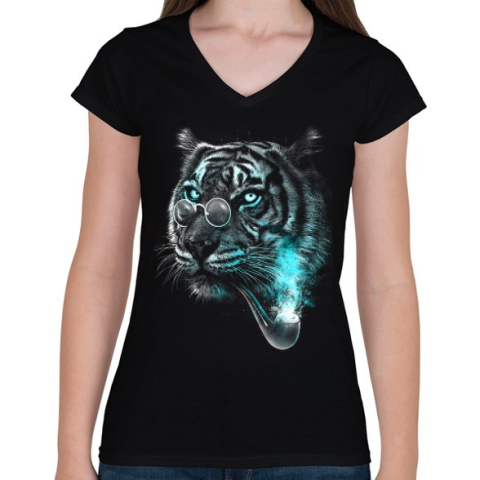 1 kép PRINTFASHION Értelmiségi tigris - Női V-nyakú póló - Fekete