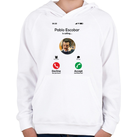 1 kép PRINTFASHION Escobar calling - Gyerek kapucnis pulóver - Fehér