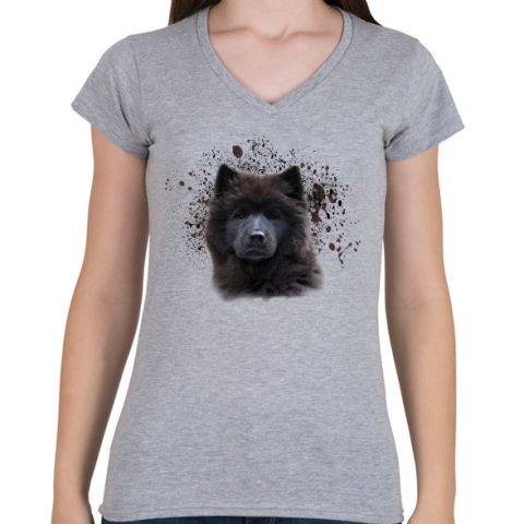 1 kép PRINTFASHION eurázsiai kutya - Női V-nyakú póló - Sport szürke