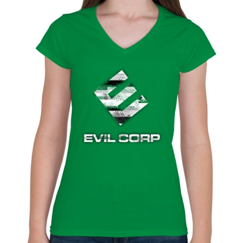1 kép PRINTFASHION Evil Corp Glitch - Női V-nyakú póló - Zöld