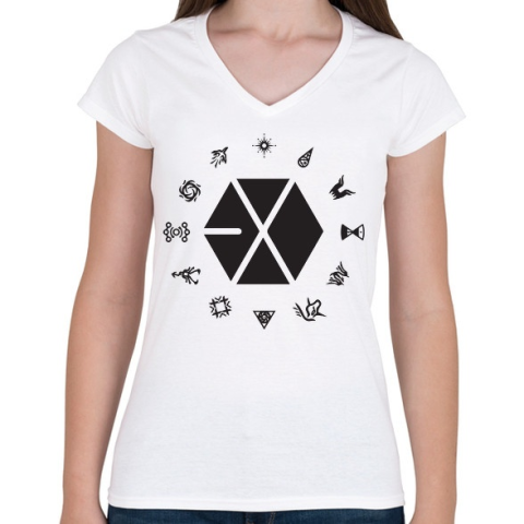 1 kép PRINTFASHION EXO logo - Női V-nyakú póló - Fehér