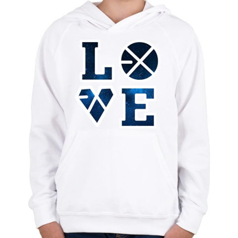 1 kép PRINTFASHION Exo Love - Gyerek kapucnis pulóver - Fehér