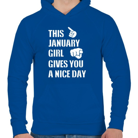 1 kép PRINTFASHION Ez a januári csaj szép napot kíván neked - Férfi kapucnis pulóver - Királykék