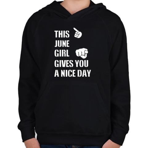 1 kép PRINTFASHION Ez a júniusi csaj szép napot kíván neked - Gyerek kapucnis pulóver - Fekete