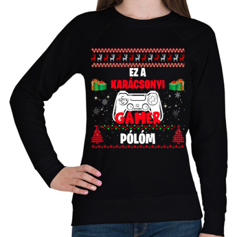 1 kép PRINTFASHION Ez a karácsonyi gamer pólóm - Női pulóver - Fekete
